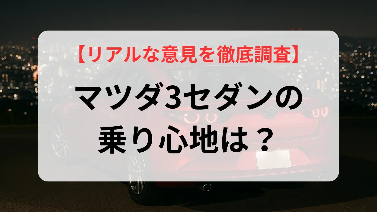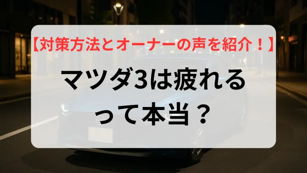 マツダ3は疲れるの? マツダ3の疲れを軽減する対策方法はある? 上記のような疑問を持っている方も多いでしょう。 結論から言えば、マツダ3で疲れるかどうかは「人による」というのが正直なところです。 本記事では、マツダ3が疲れると言われる具体的な原... MAZDA3マツダ3セダンの乗り心地は?リアルな意見を徹底調査【2025年最新版】