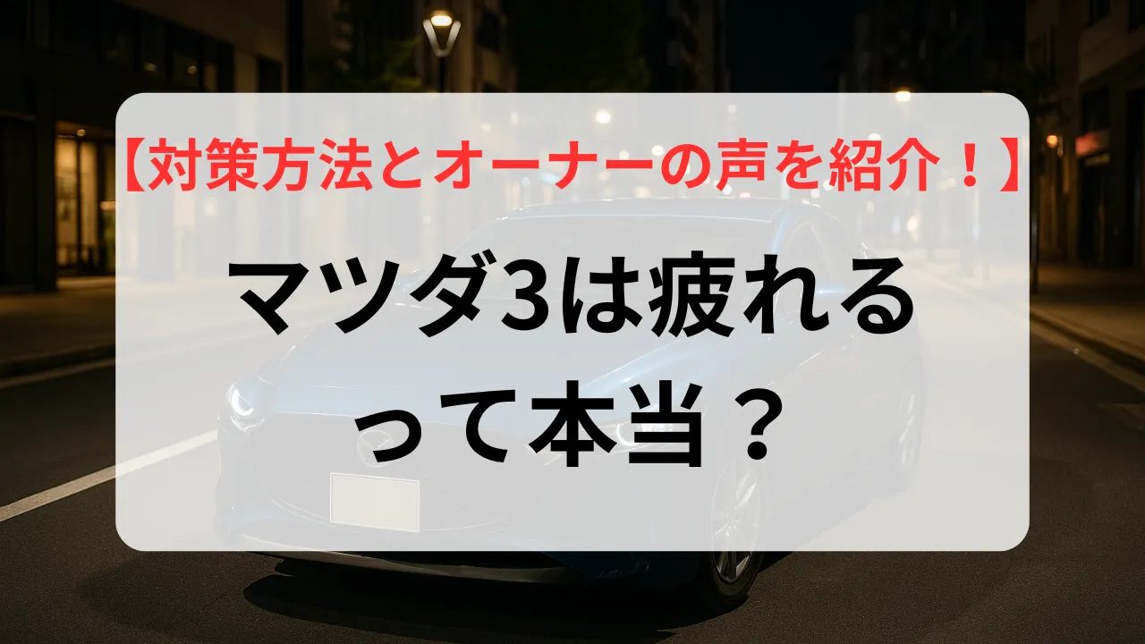 マツダ3 20Sの評価は良いの? マツダ3 20Sの悪い評価も知っておきたい! 上記のように、MAZDAの中でも人気がある「マツダ3 20S」の評価が気になっている方も多いでしょう。 結論から言うと、マツダ3 20Sは静粛性とパワー、扱いやすさのバランスが非常に高... MAZDA3マツダ3は疲れるって本当?対策方法とオーナーの声を紹介!【2025年最新版】